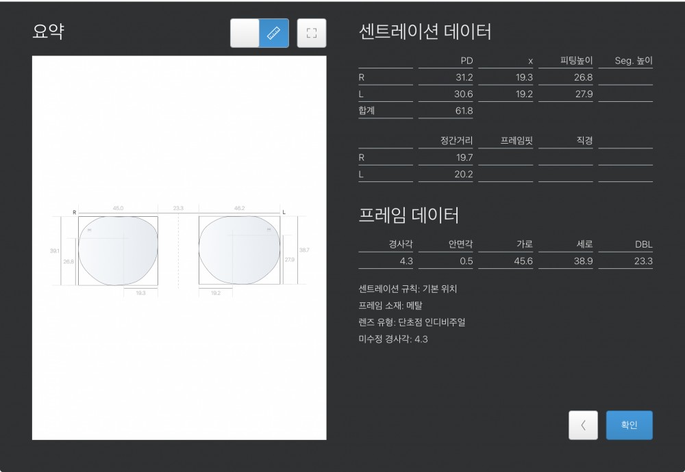 | 도수(-R) | +4.00-1.00 x155 | 도수(-L) | +2.00 |